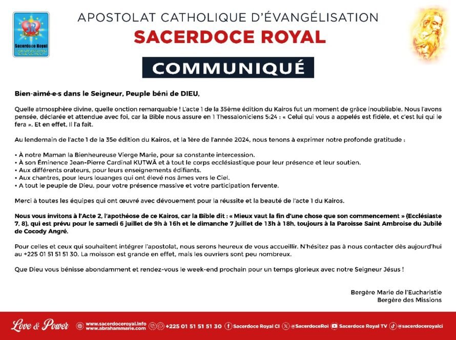 MESSE D’ACTION DE GRACE DE L’APOSTOLAT CATHOLIQUE SACERDOCE ROYAL